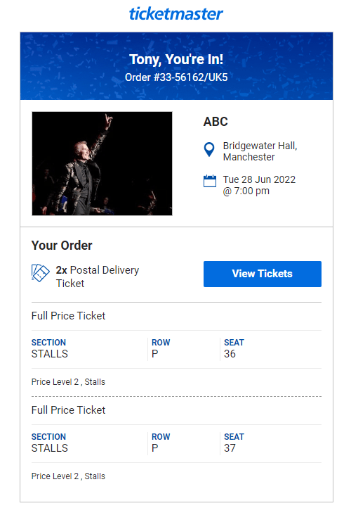 Kuukaudet kuluivat ja en edelleenkään voinut uskoa täysin todeksi, että kesällä 2022 näkisin ja kuulisin ABC:n livenä. Maailma kipuili edelleen myös pandemian jälkimainingeissa, joten muut matkajärjestelyt saivat myös viipyillä. Jossain vaiheessa vuoden vaihteen jälkeen varasimme lennot ja vasta parisen kuukautta ennen H-hetkeä keskityimme tarkastelemaan majoitusvaihtoehtoja. Kaikki sujui näiltä osin mutkattomasti ja saatoin keskittyä olennaiseen. Noin kuukausi ennen matkaa postilaatikosta putkahti myös paperiset konserttiliput tapahtumaan. Ne tulivat jotenkin yllättäen, sillä oletin sisäänpääsyn tapahtuvan vain Ticketmasterin sovelluksen kautta esitettävien pääsylippujen kautta. Tapahtumapaikkana toimi Manchesterin The Bridgewater hall, vuonna 1996 avattu konserttisali joka vetää hieman yli 2300 katsojaa. Varsin optimaalinen sali tämäntyyppiselle tapahtumalle, voin ainakin jälkiviisaudella todeta.