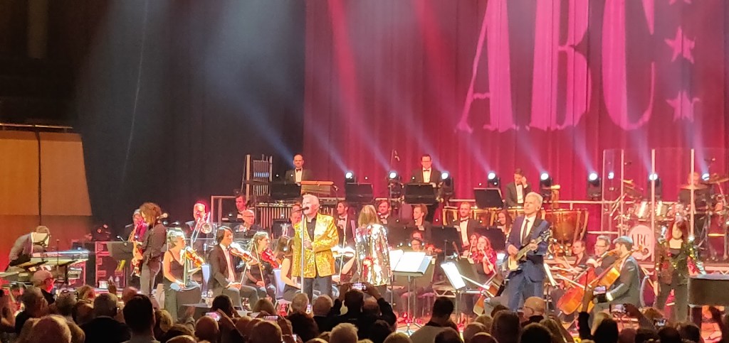 ”The lexicon of love” -albumi on kestoltaan noin 42 minuuttia, joten oli tietenkin päivänselvää että noin 75 englannin puntaa maksavan konserttilipun maksava kuulija saa kuullakseen muutakin materiaalia. Niinpä konsertti koostui kahdesta selkeästi toisistaan erottuvasta osiosta. Ensin kuulimme kattauksen ABC:n muusta tuotannosta, monille aiheeseen perehtymättömälle varmasti vähän vieraammista lauluista. Onneksi The Bridgewaterin yleisö koostui pääsääntöisesti ABC-faneista ja etenkin brittiläisestä yleisöstä, joiden korviin lienee kantautunut ainakin joitakin ”The lexicon of loven” ulkopuolisia hittikappaleita. Popsaundista huolehtivan rytmiryhmän tukena konsertissa musisoi siis Southbank sinfonia -orkesteri, jonka kapellimestarina toimi Anne Dudley. Dudley oli 40 vuotta sitten aloitteleva musikantti, joka teki orkesterisovitukset ”The lexicon of lovelle” ja soitti albumilla myös koskettimia. Retropopparit muistavat hänet myös The Art of noise -yhtyeestä, jonka miehistöön kuului myös ABC-debyytin tuottanut Trevor Horn – hänkin noihin aikoihin aloitteleva musiikin ammattilainen.