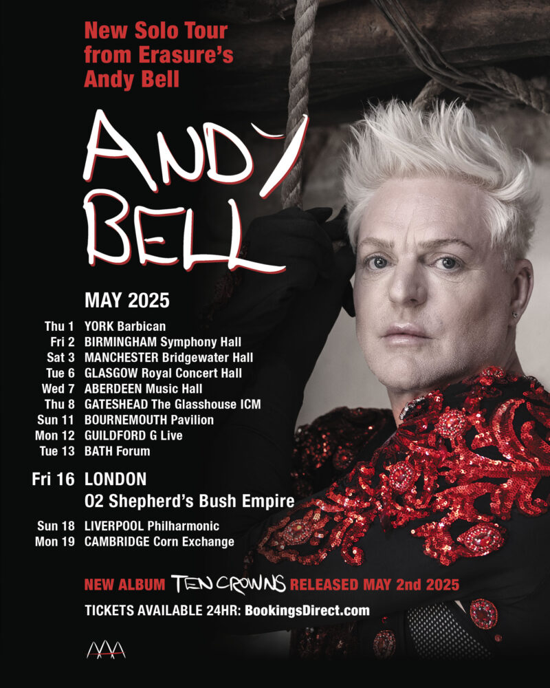 Erasure-yhtyeestä tuttu Andy Bell julkaisee 2. toukokuuta 2025 kolmannen sooloalbuminsa ”Ten Crowns”. Erasuren jäsenenä Bell on kirjoittanut yli 200 kappaletta yhdessä duon toisen osapuolen Vince Clarken kanssa. Yhtye on myynyt maailmanlaajuisesti yli 25 miljoonaa albumia ja saavuttanut levyillään viisi kertaa Britannian albumilistan ykkössijan.